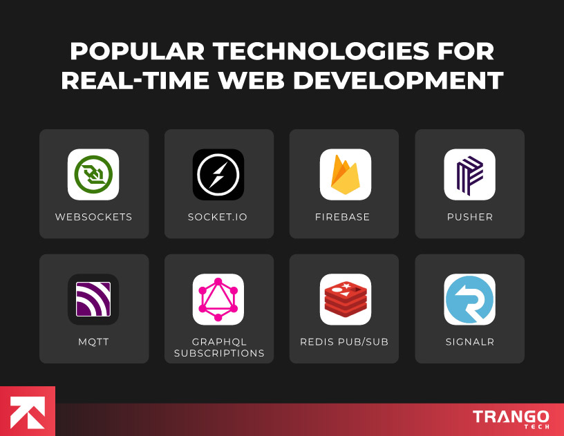 Below are the most commonly used technologies that power real-time web apps. Also, you can explore best web application development frameworks for an efficient web development.